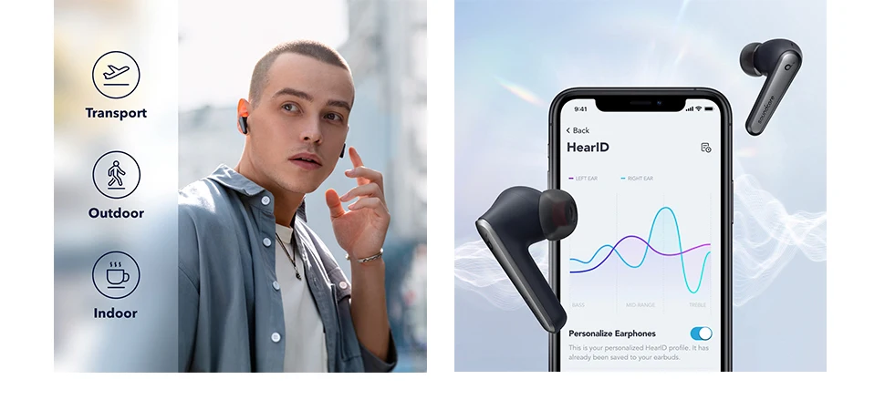 Choose your scenario via the Soundcore app and listen