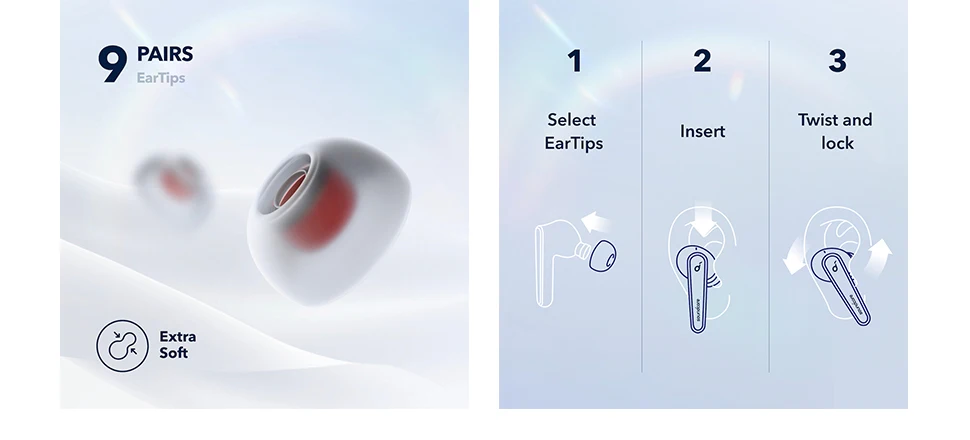 The soundcore app allows you to customize everything from the EQ to creating your own relaxing white noise soundscape. Also, test the earbuds’ fit, update firmware, and more.