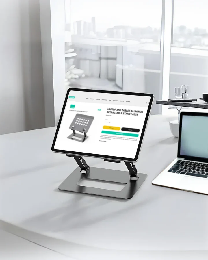 The Amaze Foldable Aluminum Laptop Stand is designed to deliver ergonomic comfort, strong support, and excellent portability. Crafted from high-quality aluminum with a galvanized sheet and silicone padding, it provides a stable, non-slip base while helping improve posture and airflow.